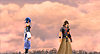 "Long ago, people lived in peace, bathed in the warmth of light. Everyone loved the light. Then people began to fight over it. They wanted to keep it for themselves. And darkness was born in their hearts. The darkness spread, swallowing the light and many people's hearts. It covered everything, and the world disappeared. But small fragments of light survived, in the hearts of children. With these fragments of light, children rebuilt the lost world. It's the world we live in now. But the true light sleeps, deep within the darkness. That's why the worlds are still scattered, divided from each other. But someday, a door to the innermost darkness will open, and true light will return. So, listen, child. Even if the deepest darkness, there will always be a light to guide you. Believe in the light, and the darkness will never defeat you. Your heart will shine with its power and push the darkness away."Aqua hears once again that darkness and light both exist together. Echoes of "strong rays of sun create dark shadows" can be heard throughout the story. However the story talks even more of the relationship of darkness and light. Even in the deepest darkness, light still exists. Even in the brightest light, darkness is lurking around the corner. One cannot completely conquer the other. However, as long as you believe in the light, the darkness can be kept at bay. Perhaps that is what she should do? Keep the darkness at bay rather than destroying it? At this point in time, I think such ideas are resonating with Aqua because she smiled after watching Kairi and her grandmother walk away. She comments on how meeting Kairi was not just a coincidence. Even so, I don't believe Aqua is quite at the point where she truly realizes that light and dark exist in a balanced relationship. When she meets Terra shortly after in Radiant Garden, she is still very judgmental about his recent actions that are far from "good." She tells him that he shouldn't be putting himself so close to the darkness, clearly because she still believes that all darkness is bad and the world would be better off without it. Later, when she first hears that Terra had a hand in Eraqus' death, she is dumbfounded and can't believe it. Murdering Eraqus would be "evil." Terra giving in to the darkness would be the only explanation for such an act.